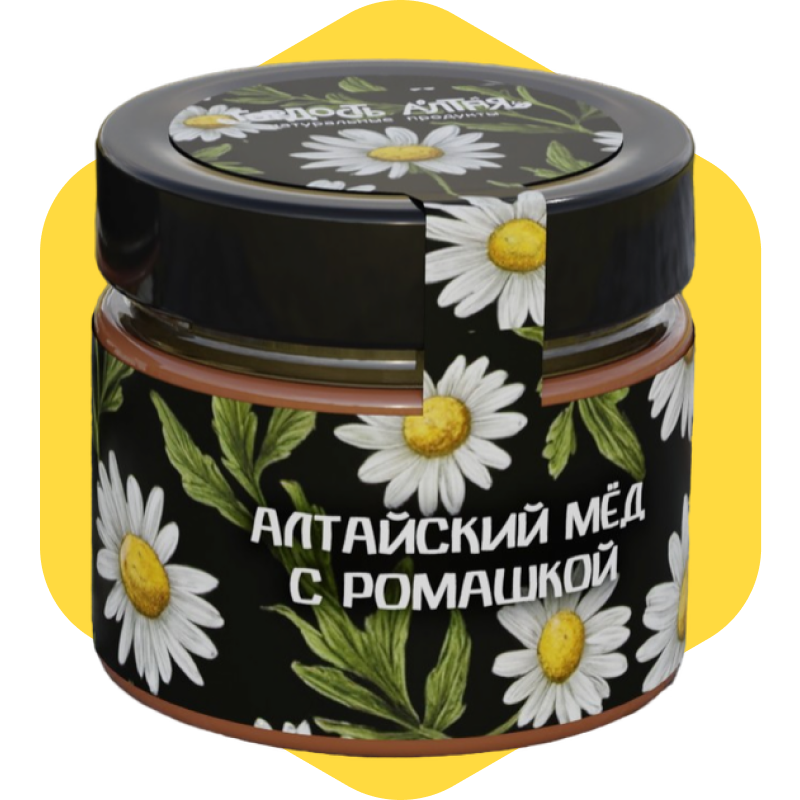 Мёд с ромашкой — это натуральный десерт и функциональный продукт одновременно. В его составе — цветочный мёд из Алтайского края и пищевое нерафинированное ромашковое масло, полученное методом холодного отжима.