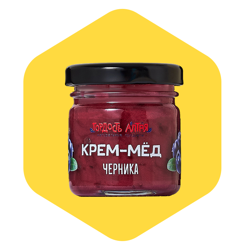 Крем-мёд с черникой — это натуральный десерт, приготовленный на основе цветочного мёда из Алтая с добавлением настоящих кусочков черники. Продукт обладает мягкой кремовой текстурой, легко намазывается и идеально подходит как для повседневного чаепития, так и для сладких блюд.
